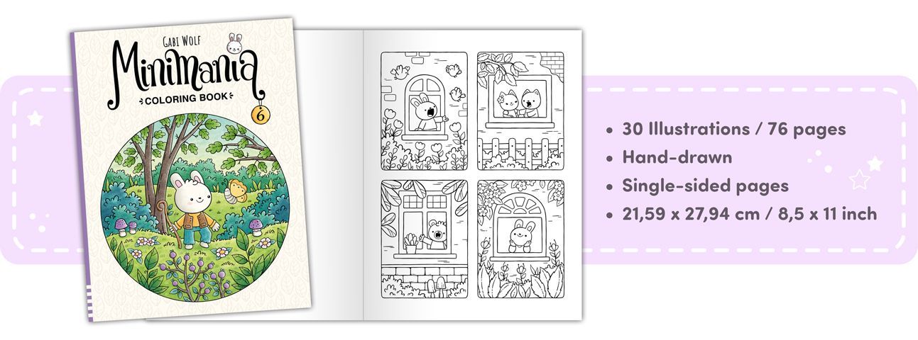 Another adventure from Minimania is waiting for you. In Minimania 6 you will find 30 hand-drawn illustrations with cute characters and beautiful landscapes. Join the characters of this fantastic world in their activities and adventures. Take your colored pencils and start your journey in Minimania.