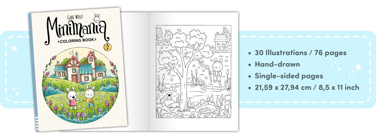 30 lovingly hand-drawn illustrations with cute characters await you in Minimania 7. Discover the funny adventures of Sunny and his friends, who are having fun swimming in the lake or going for a walk together. Get your pencils out and bring the world of Minimania to life.