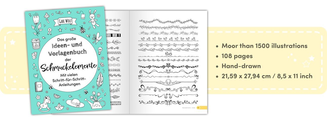 Discover over 1500 beautiful hand-drawn decorative elements and templates for your bullet journal, to creatively design invitations and postcards or to decorate bookmarks. Beginners are introduced to the subject with many step-by-step instructions. Advanced and professional users will find a wealth of templates for inspiration.