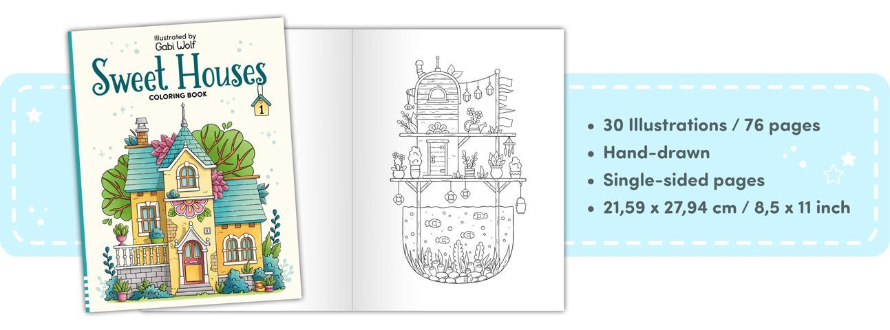 In this book, you will find 30 hand-drawn illustrations featuring cute houses. Each house is unique and has been drawn with great attention to detail. Decorated with pretty flowers, plants and delicate ornaments, coloring them in is particularly enjoyable. Get your colored pencils out of the cupboard and get started.