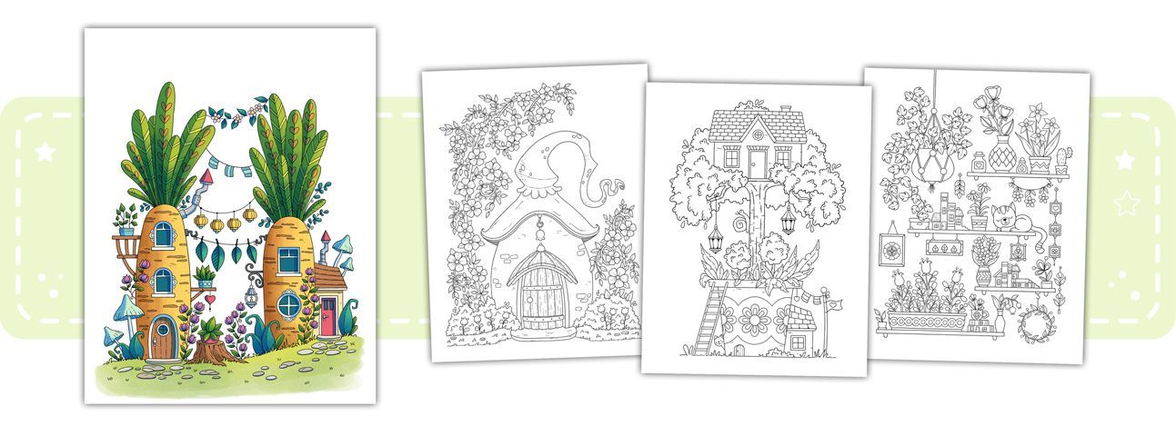 Our earth is full of wonders. Many can only be seen at second glance and some only exist in our imagination. Immerse yourself in a world of delicate flowers, imaginative houses and enchanted gardens. 30 lovingly hand-drawn motifs are just waiting for you to bring them to life with color. Sharpen your pencils and discover a world full of little wonders.